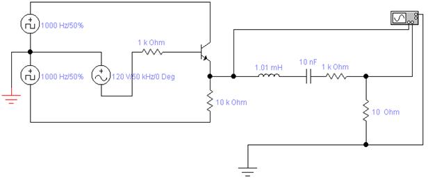 Составили и нарисовали электрическую схему, позволяющую исследовать прохождение радиоимпульса через одиночный последовательный контур.