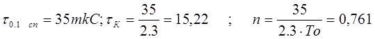 Определить время спада τ0.1 сп свободных колебаний на уровне 0.1 от начального значения, причём