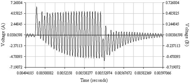 Рисунок9. Осциллограмма переднего фронта импульса (А=2)