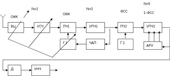 в диапазонном приемнике необходимо показать сопряженную перестройку каскадов ВЦ, УСЧ и Г приемника;
