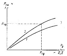 Рисунок 1 – иллюстрирует отличие задачи обеспечения требуемой верности (кривая 1) от задачи повышения верности (кривая 2). При повышении верности обеспечивается Рош <Ртр только при Р0 <Ргр . При обеспечении требуемой верности любое качество канала (вплоть до его обрыва) не увеличивает вероятность Рош выше Ртр , сводя все случаи невозможности правильного декодирования блока к отказу от декодирования, сохраняя способность выдачи потребителю информации при улучшении состояния канала, при. котором методы приема и обеспечения требуемых вероятностно-временных характеристик обмена информации (проблема 2) приводят к успешному декодированию и выдаче информации потребителю. Для такого канала полная группа событий содержит следующие события: