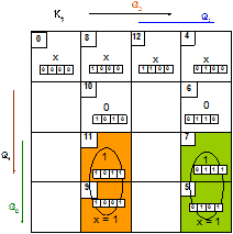 · С помощью карт Карно производим минимизацию функций входов для каждого триггера: