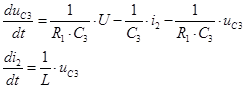 1) Для t≥0 получим систему уравнений метода переменных состояния. Используя законы Кирхгофа, составим систему уравнений: