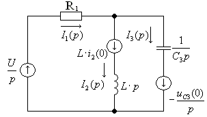 Составляется операторная схема замещения исходной электрической цепи (Рис.1) для времени