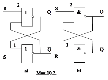 Схема RS – тригера, як і інших тригерів може бути виконана на елементах АБО-НІ ("2а.) та ТА-НІ ("2б.):
