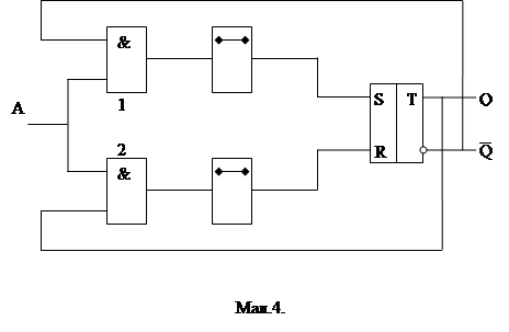 виходів RS – тригера. Елементи затримки затримують сигнали з виходів схем ТА на час, рівне довжині вхідного імпульсу А.