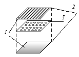3. Перфорированная матрица, на перекрестии анода и катода отверстия, внутри газ.