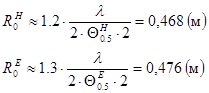 Для Е и Н плоскостей соответственно найдем радиус раскрыва: