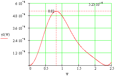 Построим график функции γ`(Y0 ), по максимуму которого определим угол раскрыва зеркала.