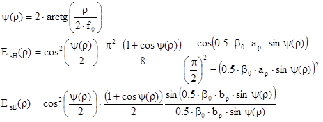 Расчет распределения поля в апертуре зеркала осуществляется по следующим формулам: