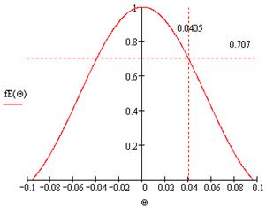 2QЕ 0.5 = 82 мрад - ширина ДН на уровне половинной мощности в плоскости Е