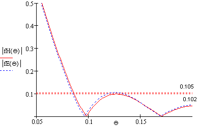 Т. к. в курсовой имеются данные о ширине диаграммы направленности в обеих плоскостях, можно определить диаметр раскрыва dp = 2 × R0 , причем из полученных двух значений диаметра следует выбрать наибольшее. Следовательно, R0 = 0,476(м).