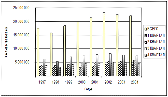 Диаграмма статистики въезда в Россию иностранных туристов вынесена в приложение 1.