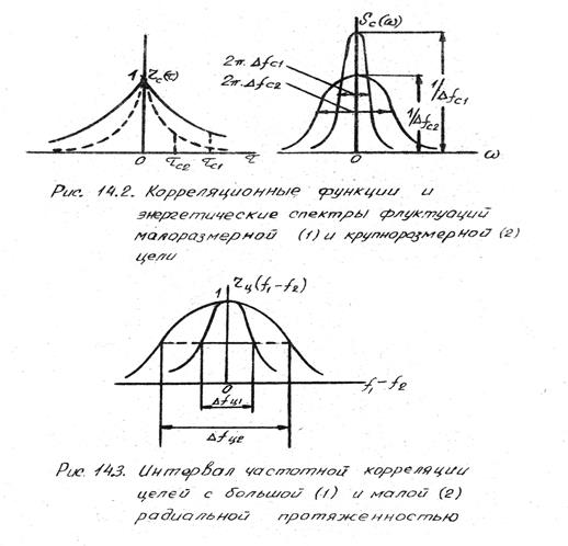 Перечисленные характеристики позволяет однозначно судить об интегральных (продольных и поперечных) размерах целей, поскольку с увеличением этих размеров спектр флуктуации отраженного сигнала расширяется) и его корреляционная функция сужается (рис. 2).