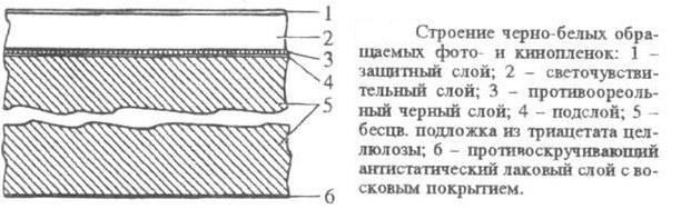 5.Рисунок строения черно-белой кинопленки и объяснить значение ее слоев.