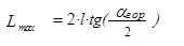 Минимально допустимые размеры ЛП определяются из следующих соображений. В соответствии с эргономическими требованиями в поле зрения, ограниченном углом зрения 10°, должно размещаться 4...8 элементов ЛП (для расчета принимаем 4 элемента). Тогда площадь зрения Sпз на ЛП, ограниченная указанным углом 10°, может быть вычислена по формуле