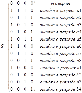 3. Расчёт матрицы синдромов для однократной ошибки.