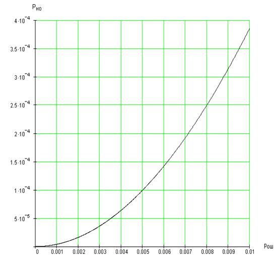 Рис.3. График зависимости вероятности не обнаруживаемой ошибки Рно на выходе системы передачи от вероятности ошибки в канале связи Рош .