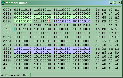 Ниже на рисунке 13 показан дамп (образ) памяти карты на котором условно цветами выделены различные области памяти по их назначению и свойствам.