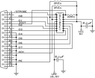 Данная схема подключения контроллера к компьютеру через LPT порт очень удобна и не требует большой аппаратной реализации.