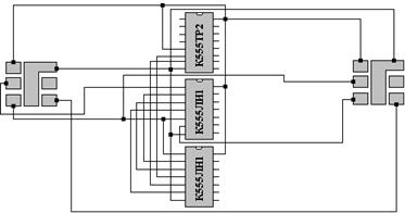 Реализуется данная схема на 3-х микросхемах: