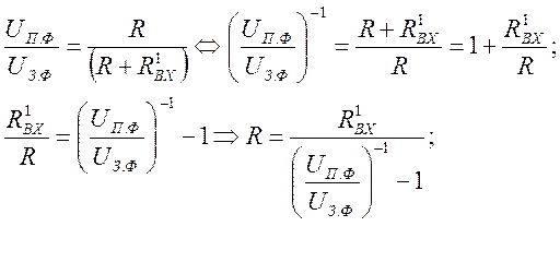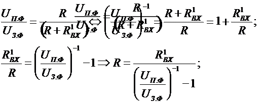 (R ≤ 20 кОм) внешнего резистивного делителя (R1, R2).Сопротивление R2 этого делителя выбирается из условий равенства или превишения минимального допустимого тока делителя (Iдел ≥ 1,5 мА) и оно обычно составляет R2 ≈ 1,2 кОм.Сумарное сопротивление делителя определяем по закону Ома: