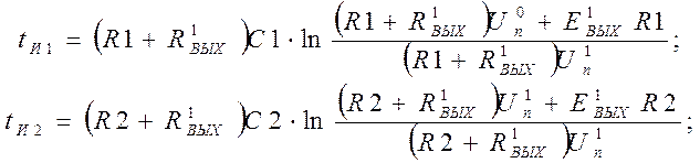 Из выражений для длительности импульсов на выходах мультивибратора: