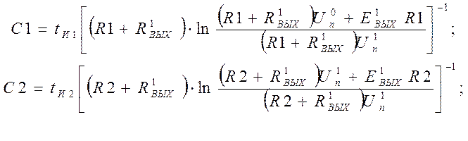 Так как t И1 ≠ t И2, мультивибратор несиметричен и С1 ≠ С2.
