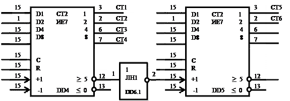 По заданному коэффициенту пересчета К = в задании выберем микросхему счетчика К531ИЕ7.
