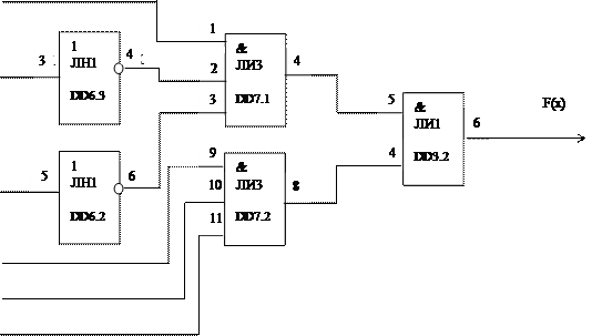 Для реализации функции F(x) необходимо иметь два инвертора элемент “И” на шесть входов и элемент “И” на 2 входа. В качестве элементов “НЕ” используем микросхему К531НЕ1, а в качестве логических элементов “И” два элемента микросхемы К531ЛИ3 на три входа и один элемента микросхемы К531ЛИ3 на два входа.