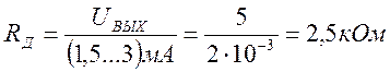 тогда R1 = R Д – 1,2кОм. = 2,5 – 1,2 = 1,3 кОм.