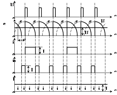 без больших погрешностей можно считать ток нагрузки идеально сглаженным (рис. 2).