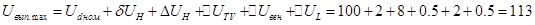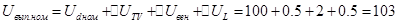 , учитывая нестабильность и диапазон регулирования выходного напряжения, а также потери в элементах схемы: