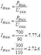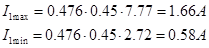 Рассчитаем минимальное и максимальное значение токов в первичной стороне трансформатора.