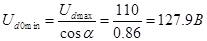 Определим максимальное и минимальное требуемое выпрямленное напряжение