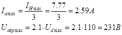 Рассчитаем максимальные значения тока и напряжения на тиристорах.