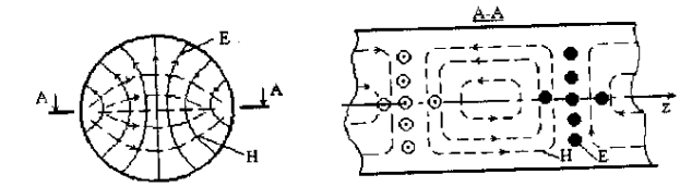 Рис.3. Силовые линии волны типа Ни в круглом волноводе.