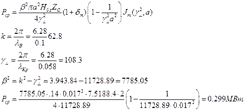 На основе диаграммы типов волн, отметим, чтов круглом волноводе не могут распространяться электромагнитные колебания с длиной волны l 0 >3.14 a . Волновод при этом оказывается в режиме отсечки. В интервале длин волн 3.41а > l0 > 2.61a волновод работает в одноволновом режиме, т.е. пропускает лишь основной тип волны H11 . Если же l0 <2.61a , то в круглом волноводе может наблюдаться уже многоволновый режим. На практике ширина области одноволновости должна быть несколько сокращена.
