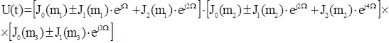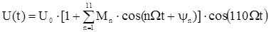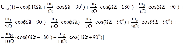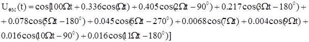 Коефіцієнт модуляції по кожній гармоніці на виході кола визначається як: