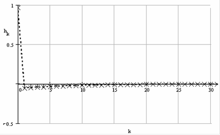 де hk - вибірки імпульсного відгуку, Т - інтервал затримки.