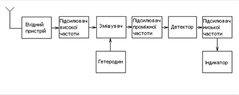 СФ - смуговий фільтр - забезпечує селекцію коливань необхідних частот, отриманих з антени.