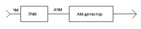 При детектуванні ЧМ-сигналу необхідно виконати дві операції над сигналом: перетворити частотно-модульований сигнал у амплітудно-модульований, потім продетектувати отриманий сигнал. Відповідно, ці дві операції у схемі виконують два вузла: схема для перетворення частотної модуляції в амплітудну (найчастіше використовують коливальний контур), та амплітудний детектор.