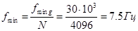 Так как в качестве секций счетчика будут использованы 4-разрядные счетчики, то для полного использования их возможностей надо взять Np =12. Тогда N=212 =4096. Учитывая, что минимальная частота генератора равна 30кГц, то минимальная частота измеряемого сигнала равна