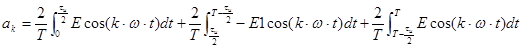 Для данной эдс (7) по формулам (2),(3а),(3б) имеем интегральные выражения: