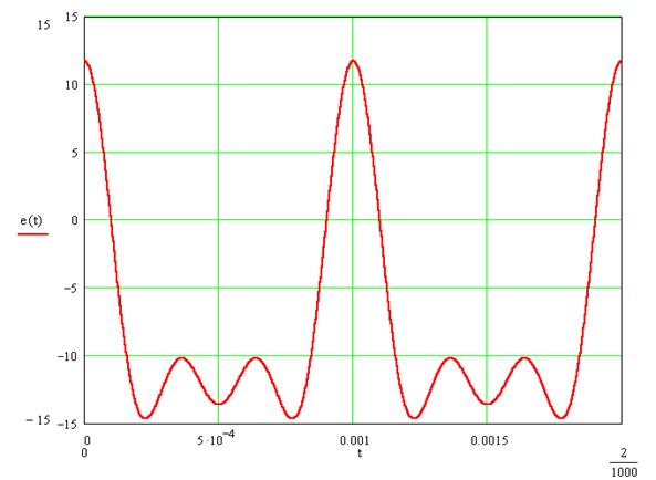 Выполнив расчёты в Mathcad получим спектр выходного напряжения: