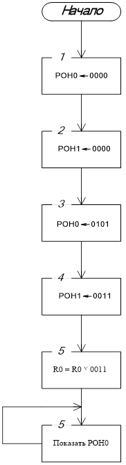 Порядок проведения работы. В РОН0 установить в единицу разряд, номер которого задан содержимым POH1. Прочие разряда РОН0 - без изменения.