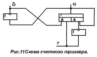 Непосредственное построение триггера по уравнению (7) дает схемное решение Т-триггера (рис 8.)