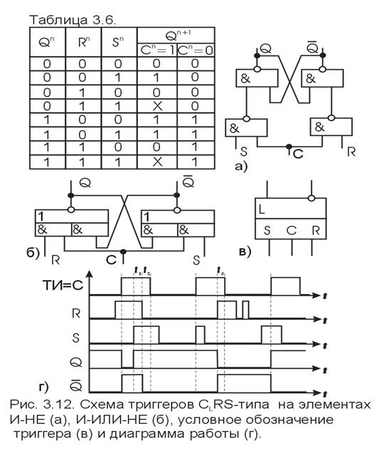 триггеры выполняются в базисе элементов И-НЕ и И-ИЛИ-НЕ.