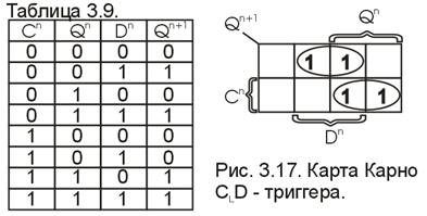 -триггеры, функционирование которых описывается табл. 9 и характеристическим уравнением (3.10), составленным по карте Карно (рис. 14).