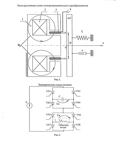Объектом исследования является электродинамический преобразователь энергии с тиристорной схемой питания, который может применяться в вибростендах, при виброакустическом просвечивании земной коры, в медицине и других отраслях техники.